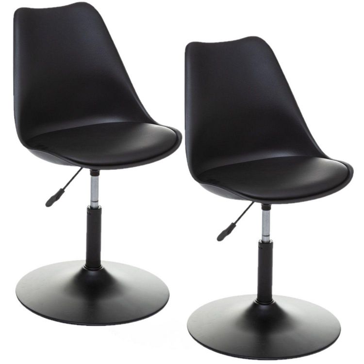 Elégantes et contemporaines, ces chaises accompagneront à la perfection votre table de salle à manger ou en guise de chaises de bureau, grâce à sa hauteur ajustable.FICHE TECHNIQUE- Lot de 2 Chaises.- Détails : avec coussin.- Hauteur ajustable.- Couleur : Noir.- Pied en Fer.- Structure de l'assise e