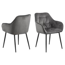 Lot de 2 Chaises de salle à manger avec accoudoisr effet velours - Gris et Noir