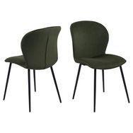 Lot de 2 chaises aux courbes contemporaines, recouvertes d'un doux velours côtelé vert olive rembourré et avec des pieds en métal noir