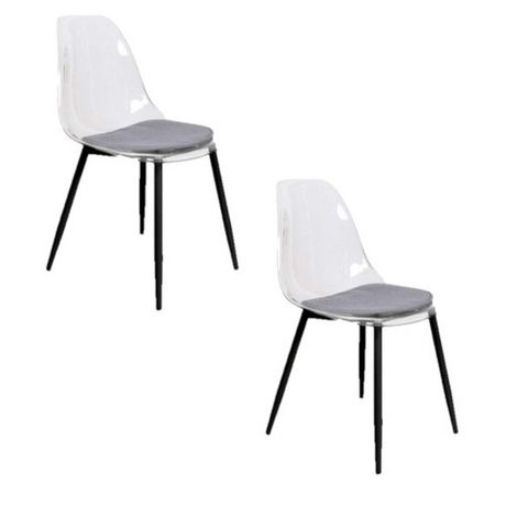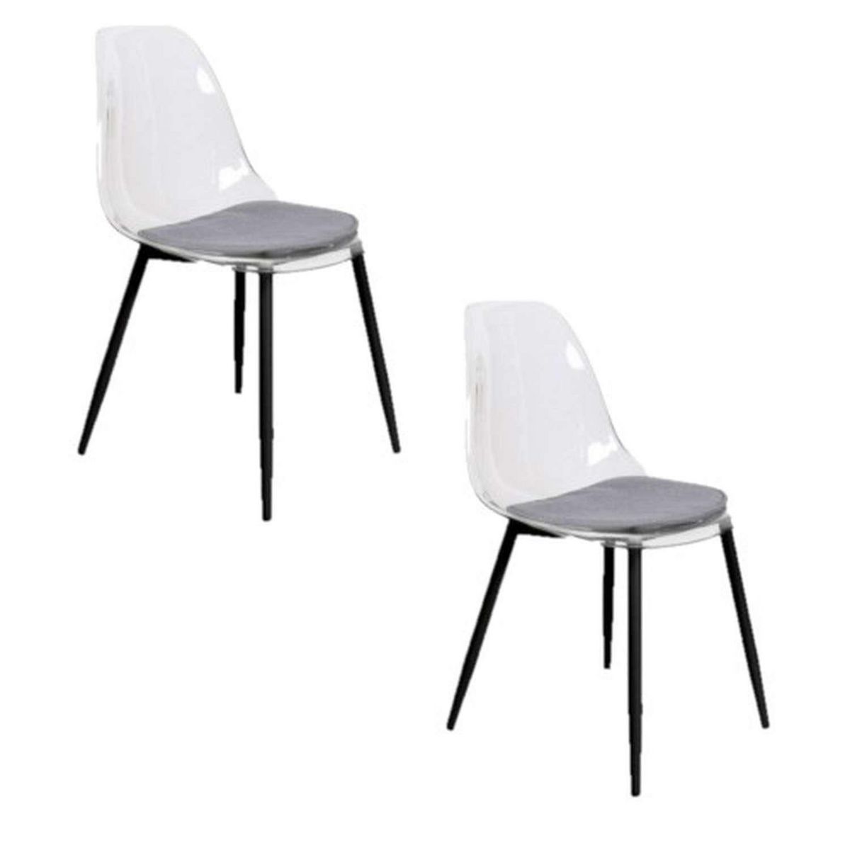 Ces belles chaises transparentes sublimeront votre espace tout en y apportant de la lumière. Leur galette rembourrée les rend ultra-confortables.FICHE TECHNIQUE- Pieds et structure en métal.- Assise en plastique transparent.- Coussin rembourré en polyéthylène.- Matériel et notice inclus.- Lot de 2.C