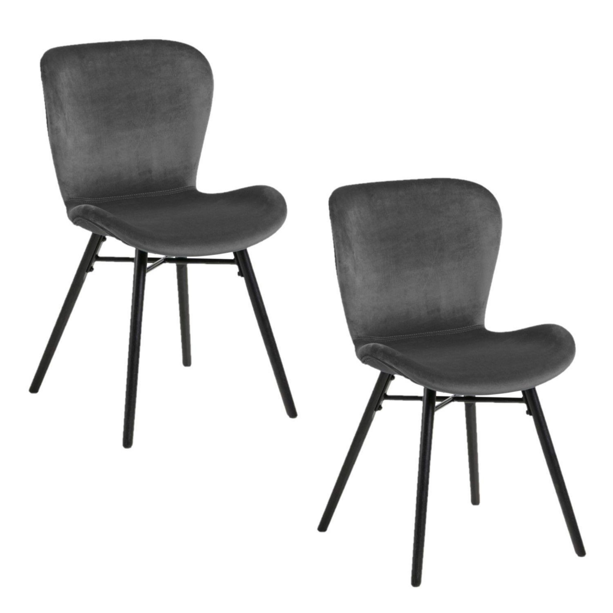 Lot de 2 chaises Lucie en velours et bois - Gris et noir