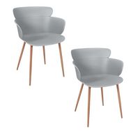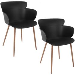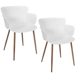 Lot de 2 fauteuils coque Lorens en polypropylène et métal - Blanc et Marron
