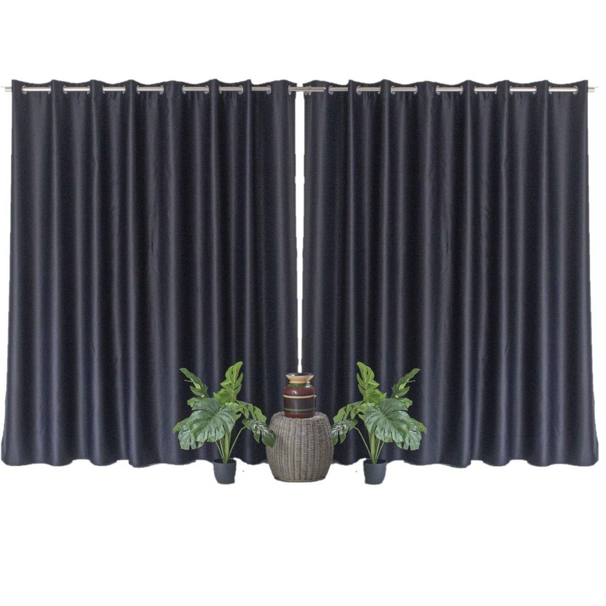 Lot de 2 grands Rideaux unis occultants avec œillets - 300 x 240 cm - Noir
