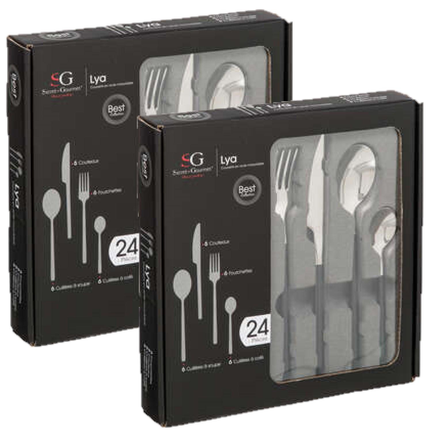 Lot de 2 Ménagères Lya en Acier Inoxydable - 48 Couverts - Noir