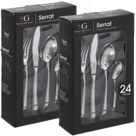 Lot de 2 Ménagères Serrat en Acier Inoxydable - 48 Couverts - Argent