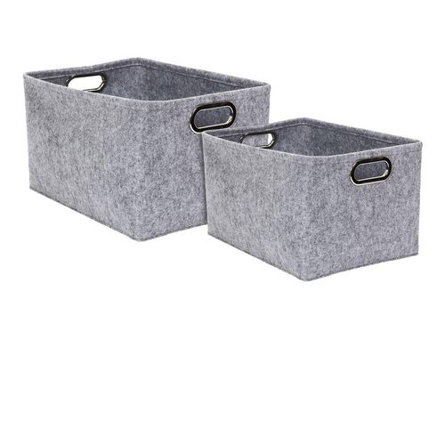 Lot de 2 Paniers de rangement rectangulaires en Polyester - Gris