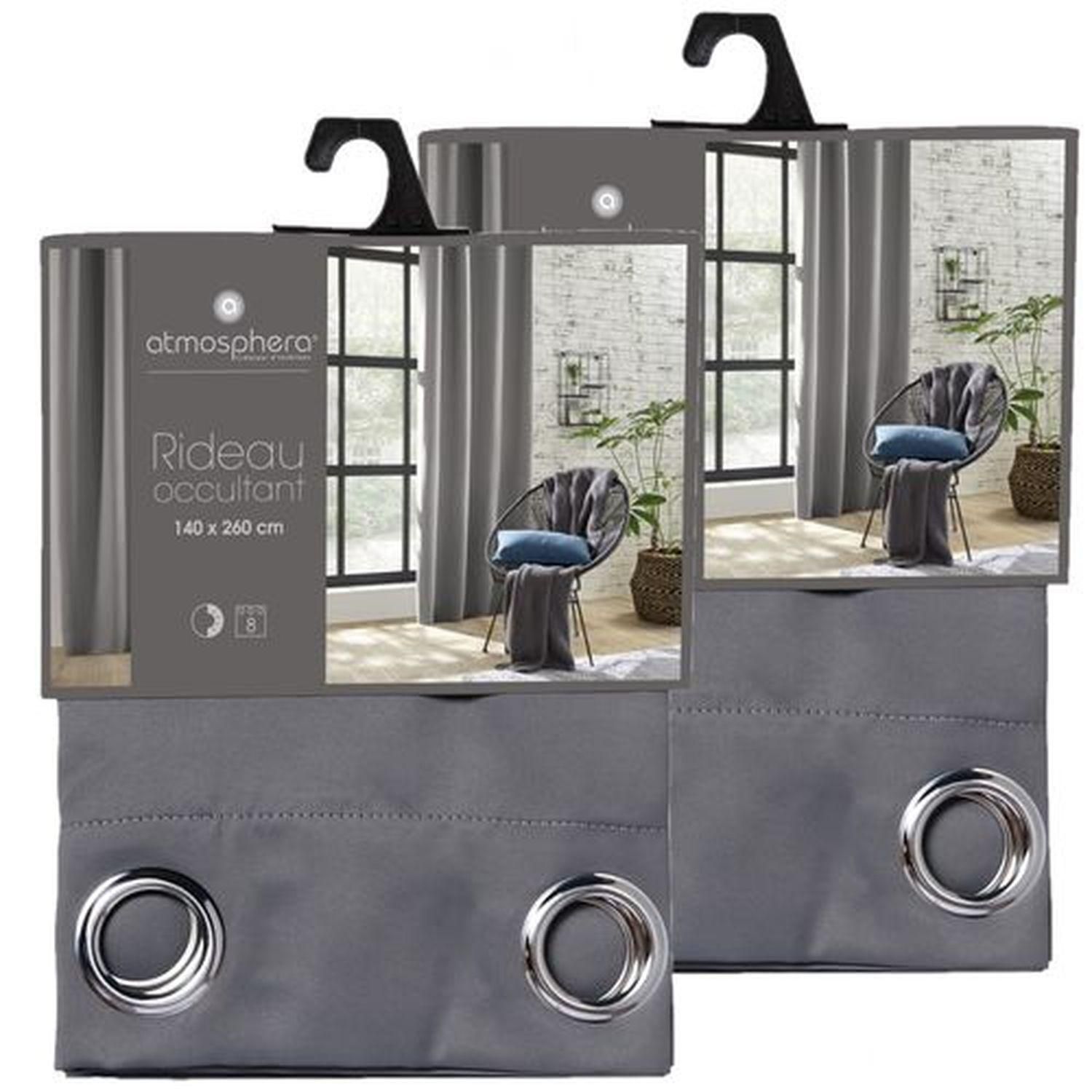 Lot de 2 Rideaux de salon occultants 8 œillets - 140 x 260 cm - Gris foncé