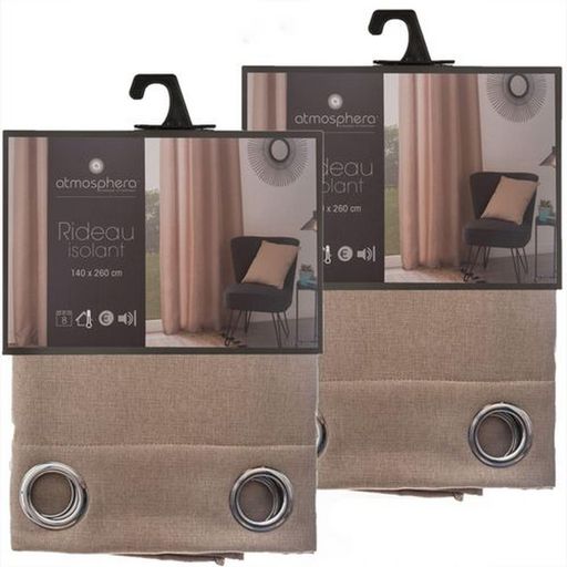 Lot de 2 Rideaux isolants Tim 8 œillets - 140 x 260 cm - Couleur lin