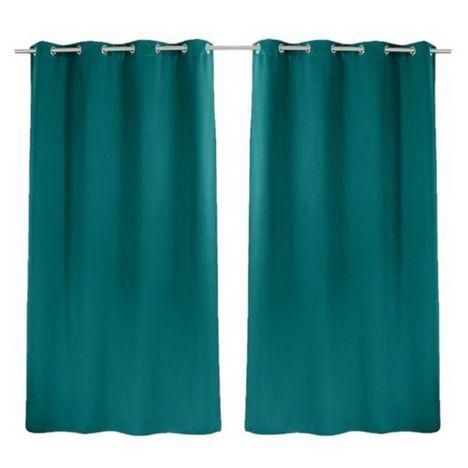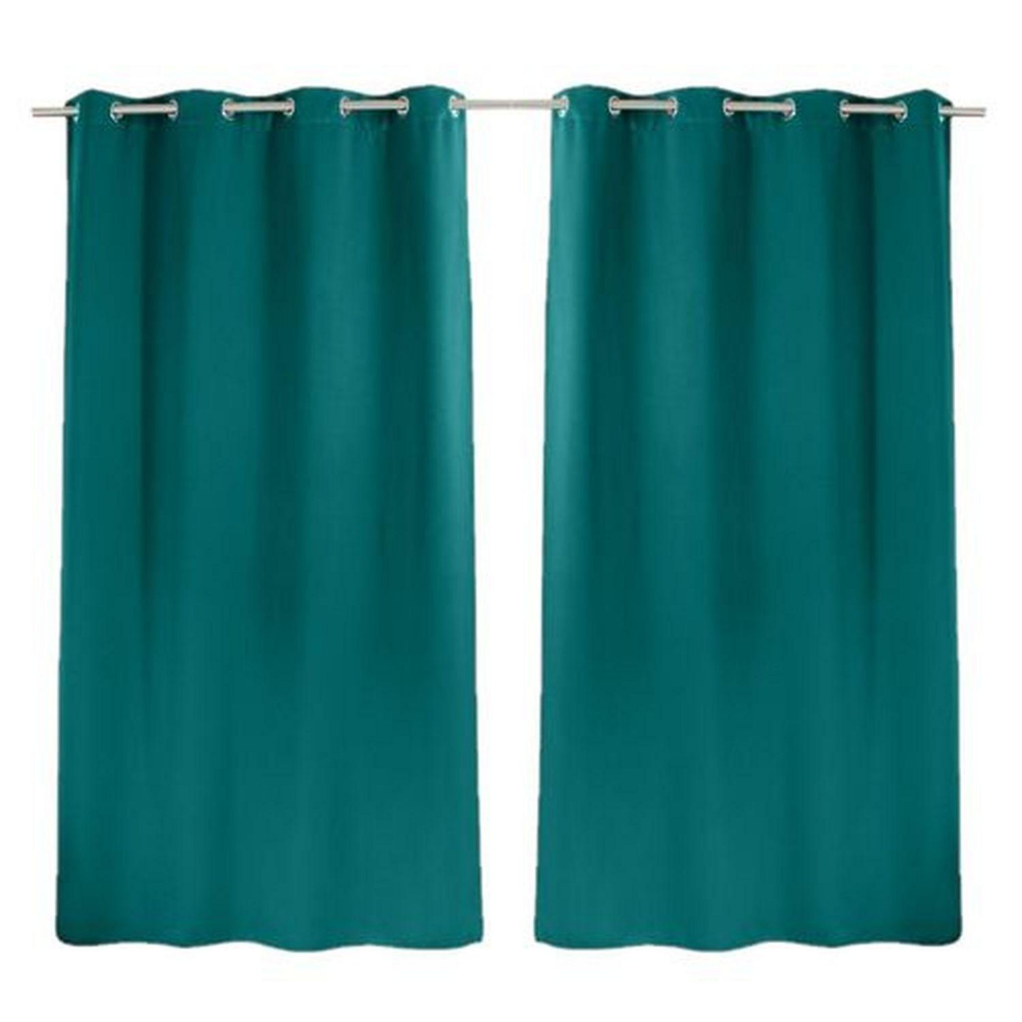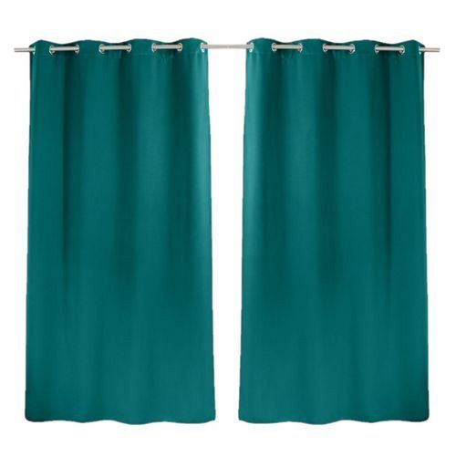 Lot de 2 Rideaux occultants Basic à 8 œillets - 140 x 240 cm - Vert émeraude