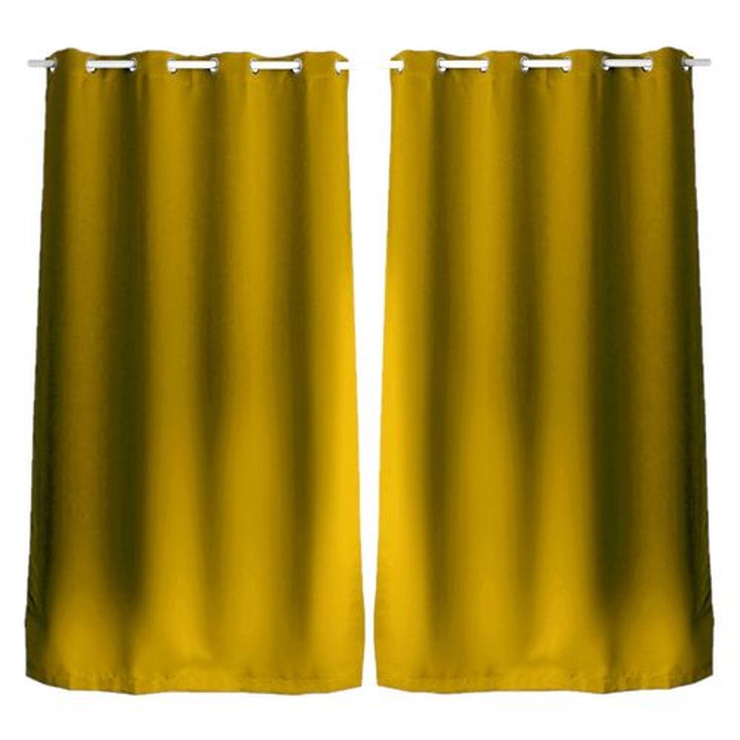 Lot de 2 Rideaux unis avec œillets - 140 x 240 cm - Moutarde