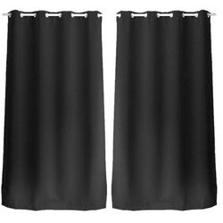 Lot de 2 Rideaux unis occultants avec œillets - 140 x 240 cm - Noir