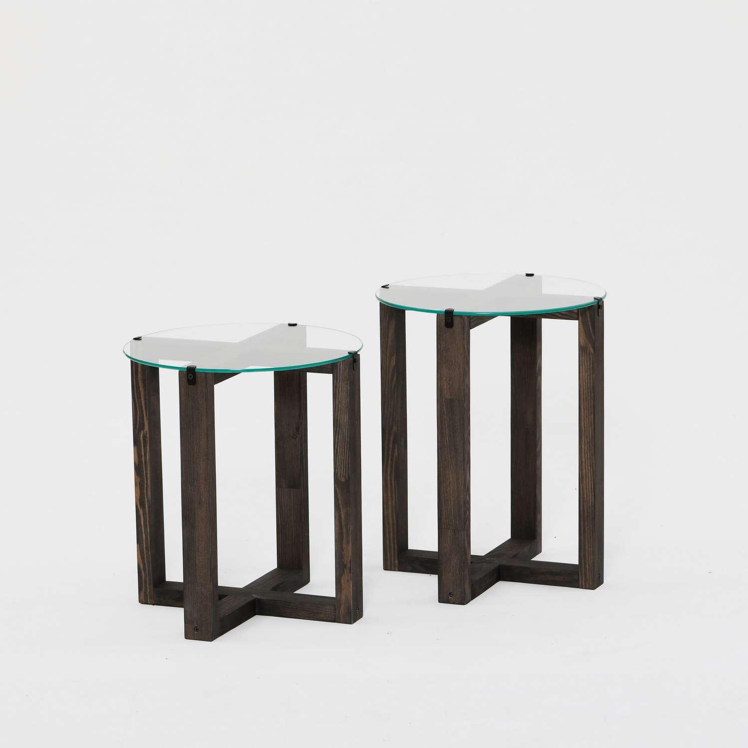 Lot de 2 tables d'appoint Galadron en verre et bois - Transparent et gris foncé
