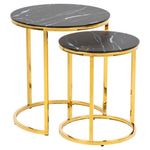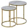 Lot de 2 Tables d'appoint ronde en Marbre et Métal - Diam.45cm + Diam.35cm - Doré et Noir