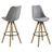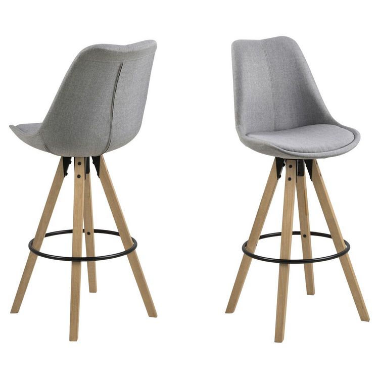Lot de 2 Tabourets de bar en tissu et bois d'Hévéa - Gris