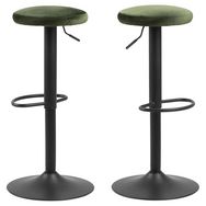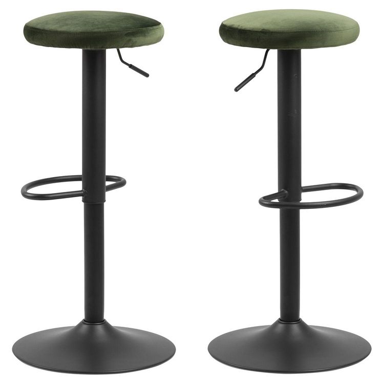 Lot de 2 Tabourets de bar avec repose pieds et hauteur réglable en tissu et métal - Vert et Noir