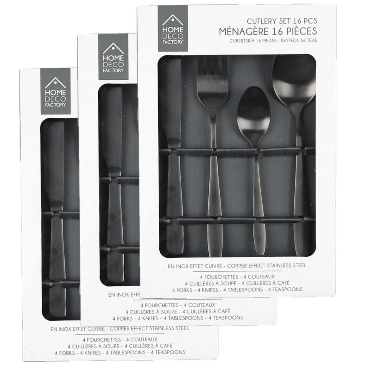 Vous adorez surprendre vos convives autour d'une belle tablée ? Testez ce lot de 3 ménagères composée de 48 couverts cuivrés en inox. Le succès sera au rendez-vous.