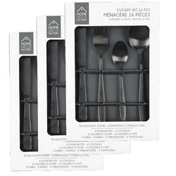 - Kit de 48 pièces contenant 12 couteaux, 12 fourchettes, 12 cuillères et 12 cuillères à café.