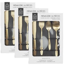 Lot de 3 Ménagères en Acier Inoxydable design Gold - 48 Couverts - Doré