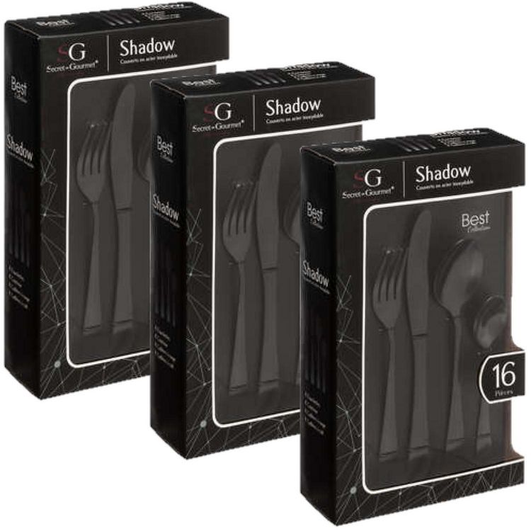Lot de 3 Ménagères Shadow en Acier Inoxydable - 48 Couverts - Noir