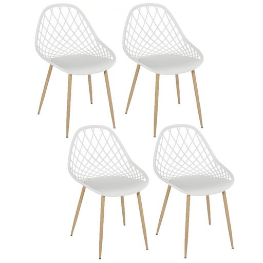 En terrasse, dans votre jardin ou sur votre balcon, détendez-vous et profitez de votre extérieur grâce à ce lot de 4 chaises d'extérieur au look tendance.FICHE TECHNIQUE- Lot de 4 chaises d'extérieur.- Couleur : Blanc.- Gamme : Malaga.- Structure en acier.- Assise en polypropylène.CARACTERISTIQUES T