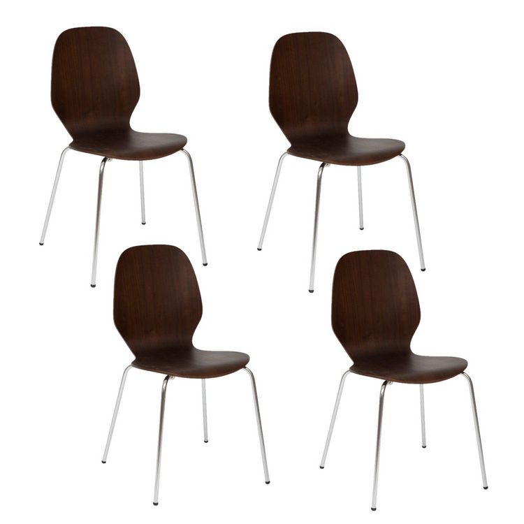 Lot de 4 chaises pieds métal assise en bois massif OURO - Marron foncé