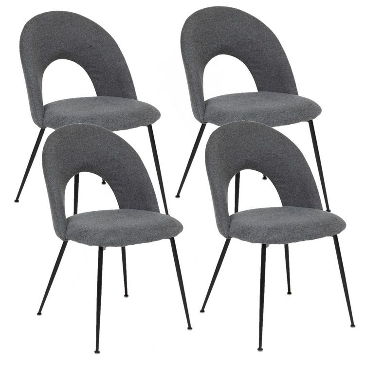 Lot de 4 chaises pieds métal assise tissu RAVEN - Gris