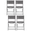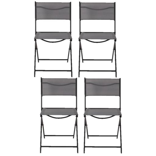 En terrasse, dans votre jardin ou sur votre balcon, détendez-vous et profitez de votre extérieur grâce à ce lot de 4 chaises d'extérieur au look tendance.FICHE TECHNIQUE- Lot de 4 chaises pliantes d'extérieur.- Gamme : Elba.- Couleur : Gris.- Structure en acier.- Assise en polyester.CARACTERISTIQUES
