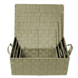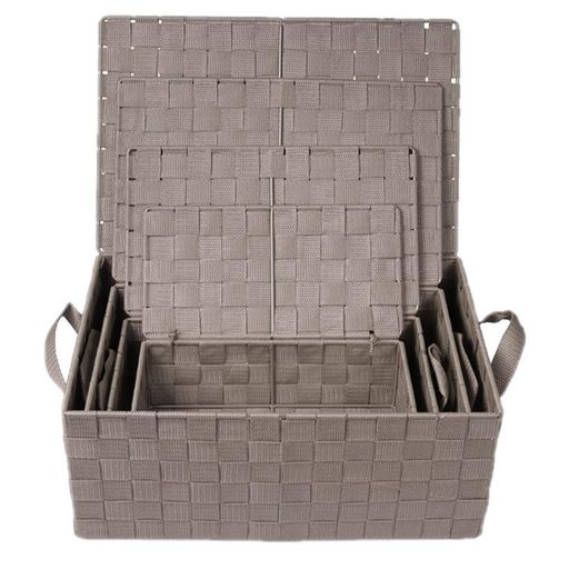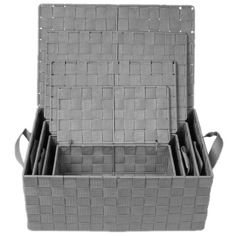Lot de 4 Corbeilles avec sangles et couvercles en Polypropylène - Gris