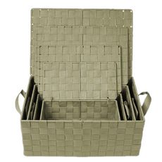 On adore ce lot de 4 corbeilles, pratiques, au look nature et coloré très tendance. Vous leur trouverez facilement une utilité dans votre cuisine, salle de bains ou votre salon.FICHE TECHNIQUE- Lot de 4 Corbeilles.- Modèles avec sangles et couvercles.- Couleur : Vert Kaki.- Armature en Métal. - Mati