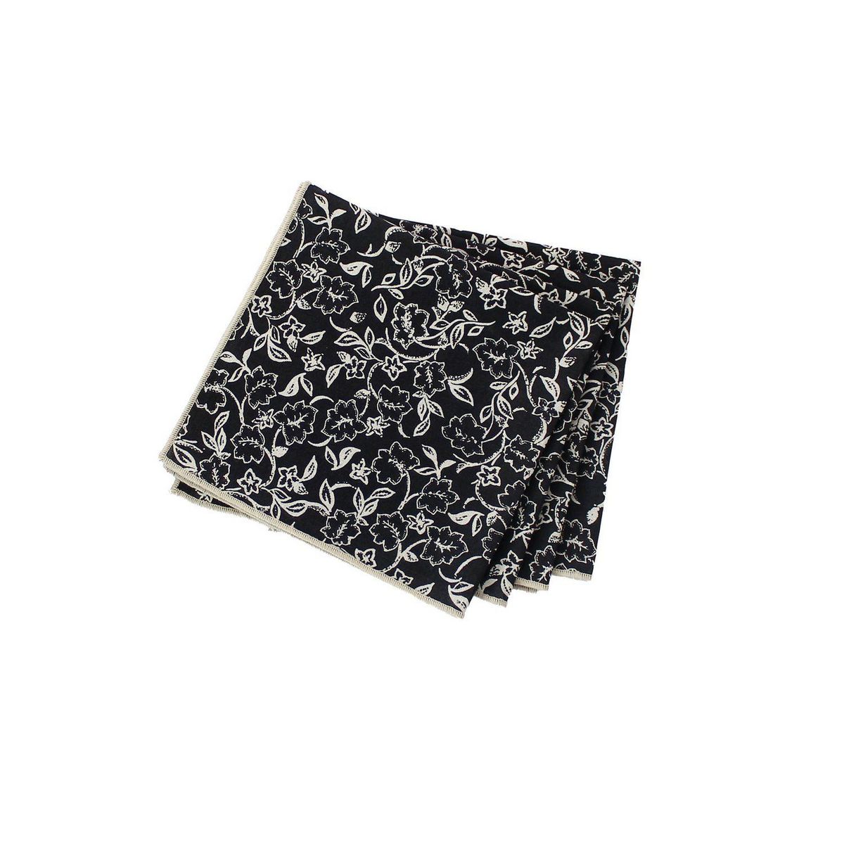 Lot de 4 serviettes de table noires avec lignes écrues LINETTE - 40 x 40 cm