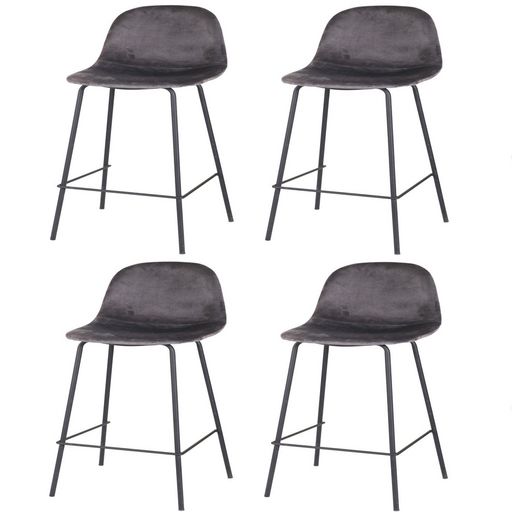 Lot de 4 Tabourets de bar design velours Ima - Gris