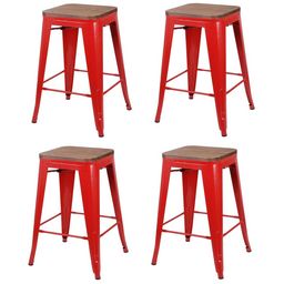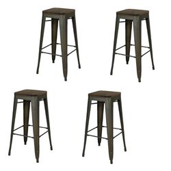 Lot de 4 Tabourets de bar vintage Liv - Gris industriel