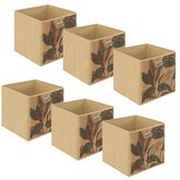 Lot de 6 Boîtes de rangement imprimé tropical en bambou et tissu Palawan - Marron et noir