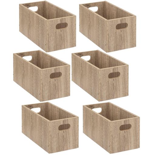 Lot de 6 Boîtes de rangement rectangulaire en MDF - L. 31 x H. 15 cm - Beige effet bois