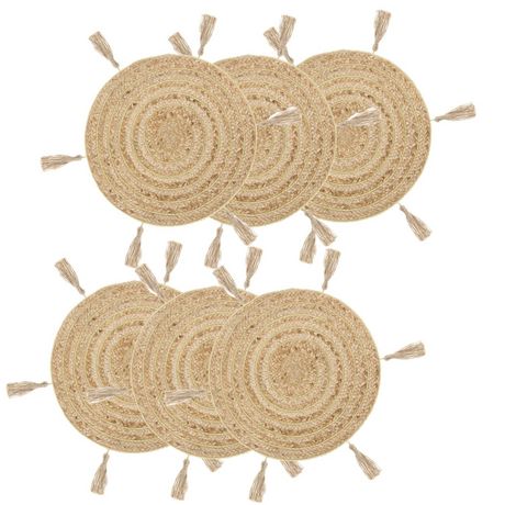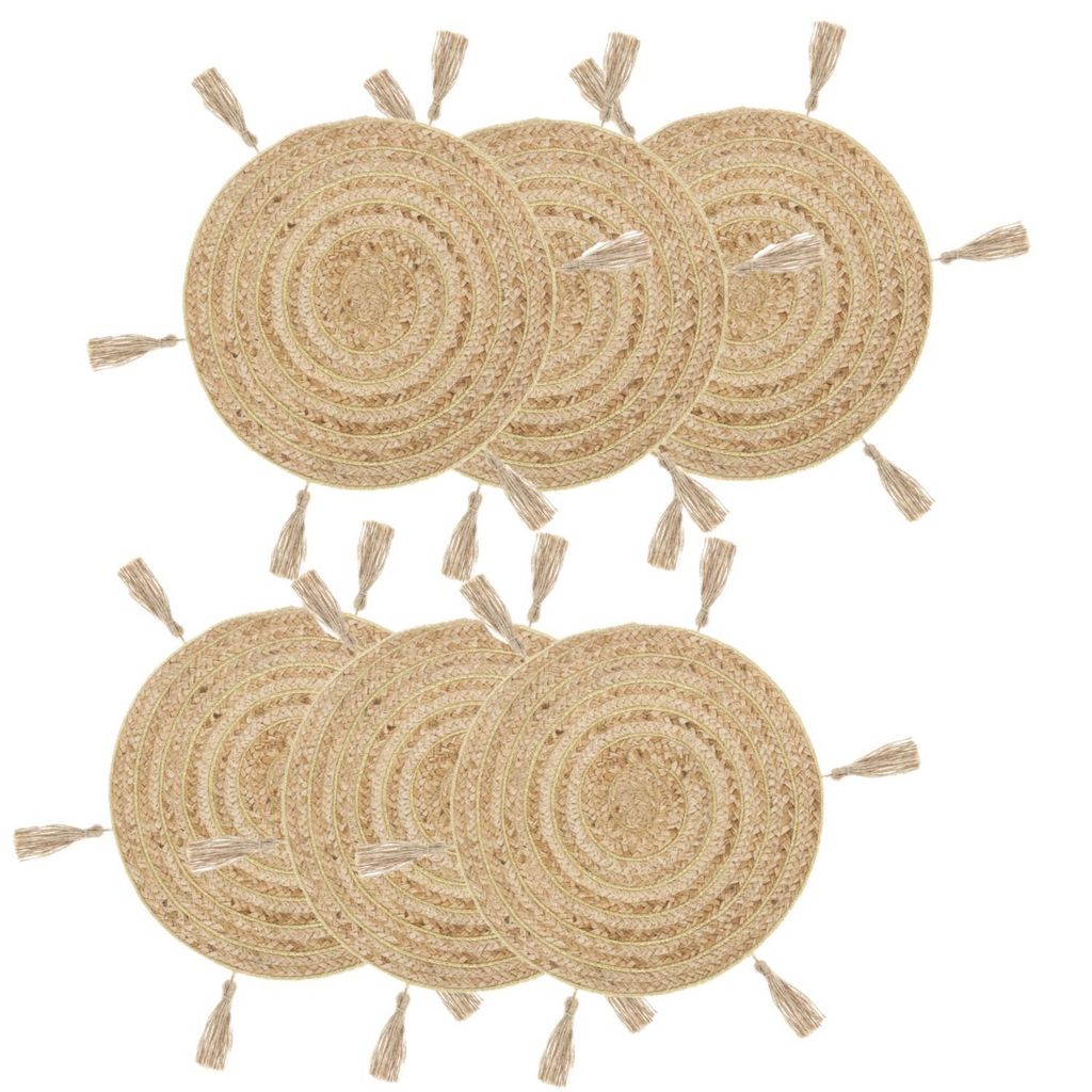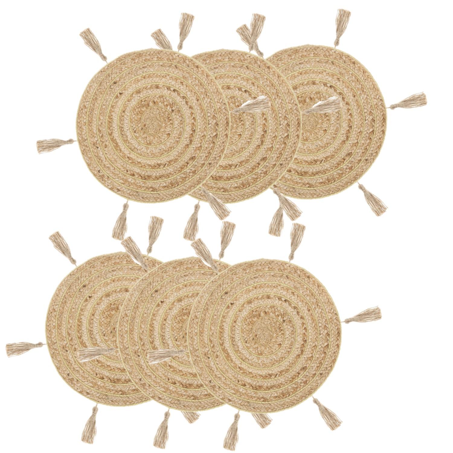 Lot de 6 sets de table en jute avec pompons - Diamètre 38 cm - Beige