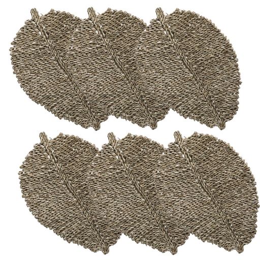 Lot de 6 sets de table feuille en roseau - 48 x 38 cm - Marron