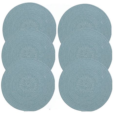 Lot de 6 sets de table rond en coton Alana - Diam. 38 cm - Bleu
