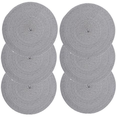 Lot de 6 sets de table rond tressés en polypropylène - Diam. 38 cm - Noir et blanc