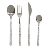 Ménagère 16 pièces effet marbre - Blanc et Noir