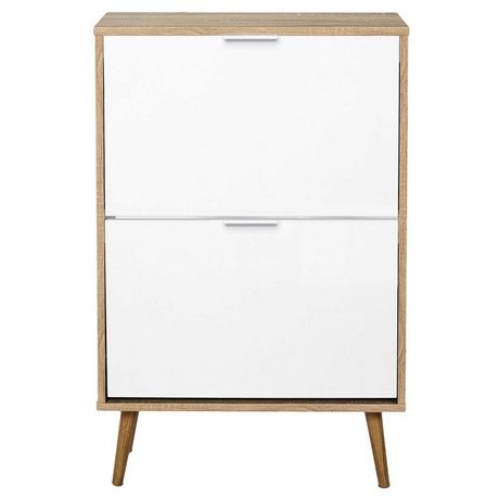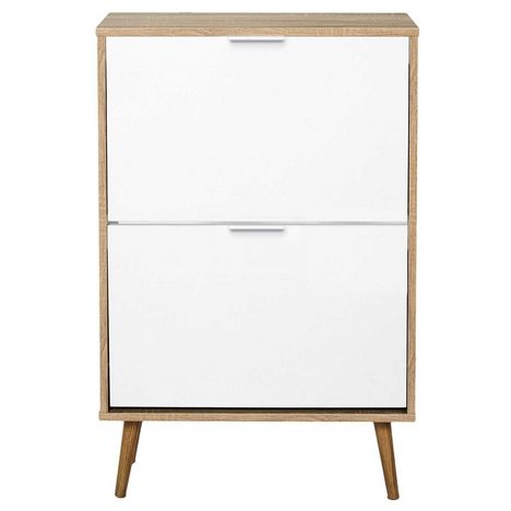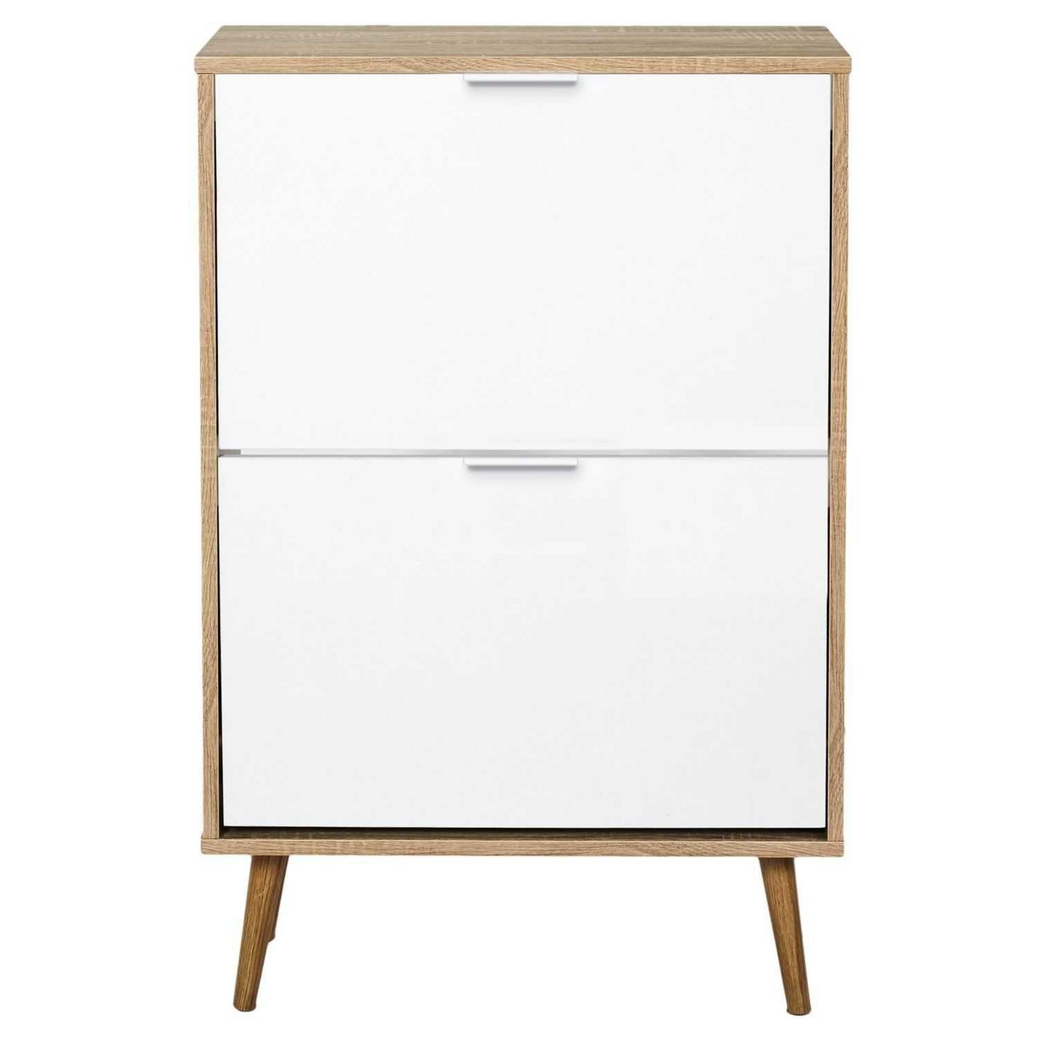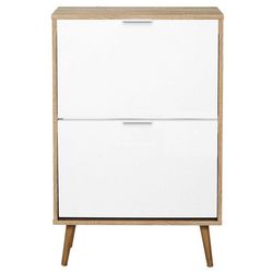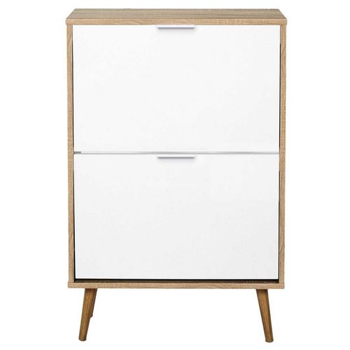 Meuble à chaussures avec 2 portes - Blanc et Bois