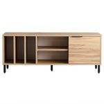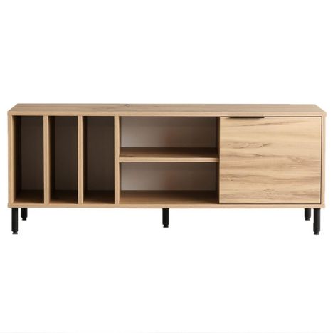 Ambiance scandinave au rendez-vous ! Pièce incontournable de votre salon, ce meuble sera parfait pour poser votre télévision. Le design épuré de notre meuble TV s'adaptera facilement à tous les styles d'intérieur. Il vous offre de multiples rangements, ouverts et fermés, pour y déposer vos livres, vinyles et décoration.