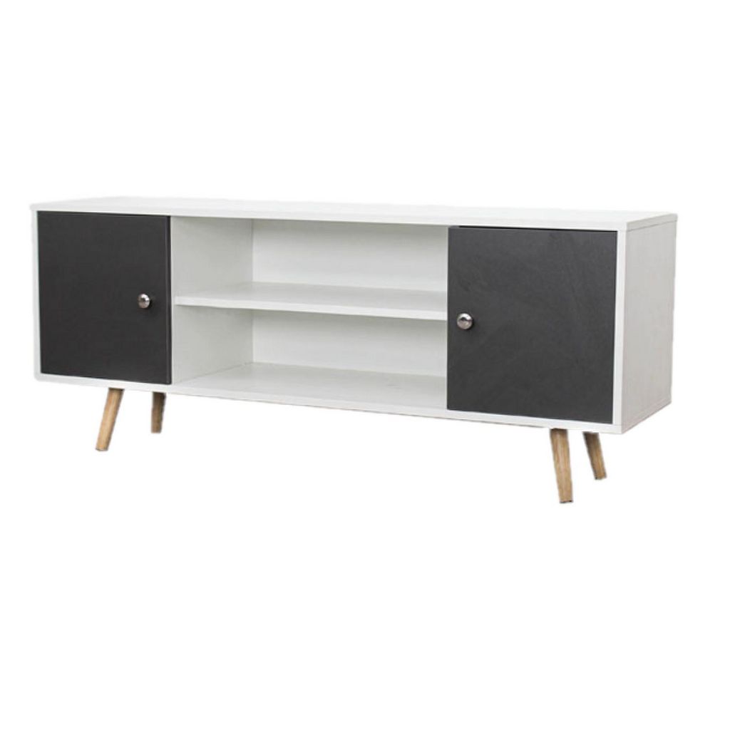 Meuble TV design Samy - L. 120 x H. 50 cm - Blanc et gris foncé