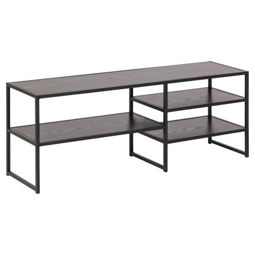 Ce meuble TV en MDF et métal offre une touche contemporaine et nature. Ses courbes et son style sont inspirés de la tendance industrielle. Epuré et élégante, on aime ses multiples rangements ouverts.FICHE TECHNIQUE- Meuble TV.- Gamme : Sireine.- Détails de rangement : 3 étagères.- Couleur : Noir.- S