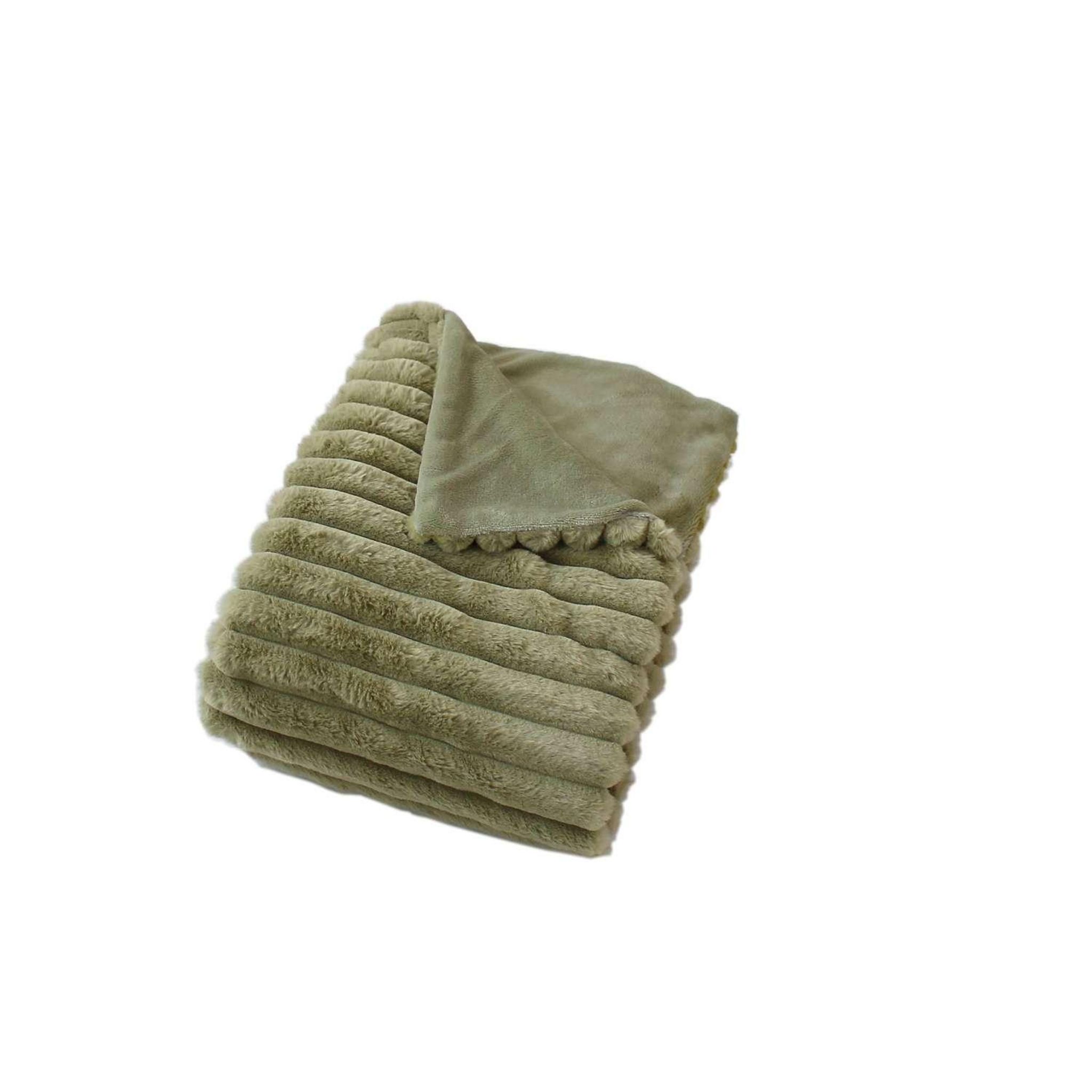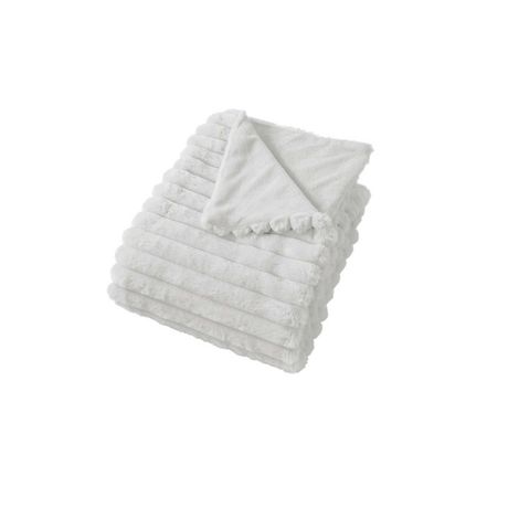 Plaid SELA imitiation fourrure côtélée et flanelle - 150 x 125 cm - Blanc