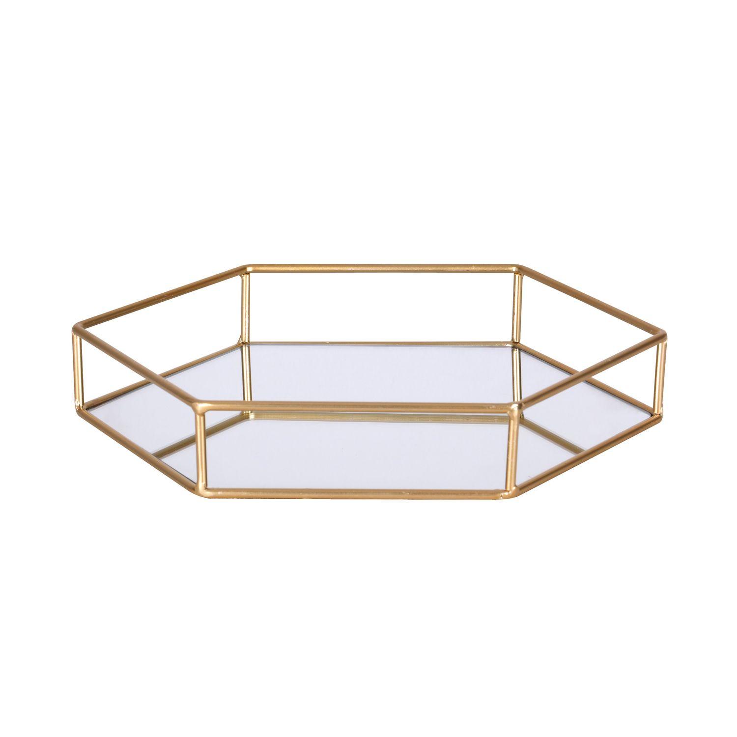 Plateau en Métal Polygone - Doré et Miroir