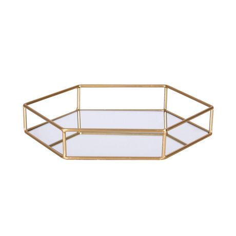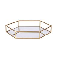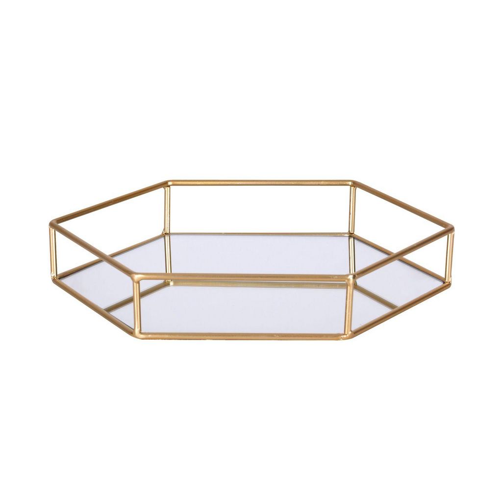 Plateau très déco en métal doré et miroir, idéal pour disposer de la déco, une bougie ou des bijoux.FICHE TECHNIQUE- Plateau en Métal Doré et Miroir Polygone.CARACTERISTIQUES TECHNIQUES- Dimensions : Largeur 30 cm x Longueur 26 cm x Hauteur 5 cm.- Poids : 0,60 kg.