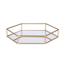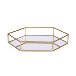 - Plateau en Métal Doré et Miroir Polygone.
