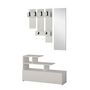 Ensemble de meubles design idéal dans votre entrée pour suspendre vos manteaux et ranger vos chaussures.FICHE TECHNIQUE- Porte manteau en mélamine 18 mm.- Meuble à chaussures en mélamine 18 mm.- Crochets en métal.- Miroir en verre.- Ensemble idéal dans votre entrée pour suspendre vos manteaux et ran
