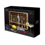 Set à cocktail avec 15 accessoires en acier inoxydable et un support en bois de Pin