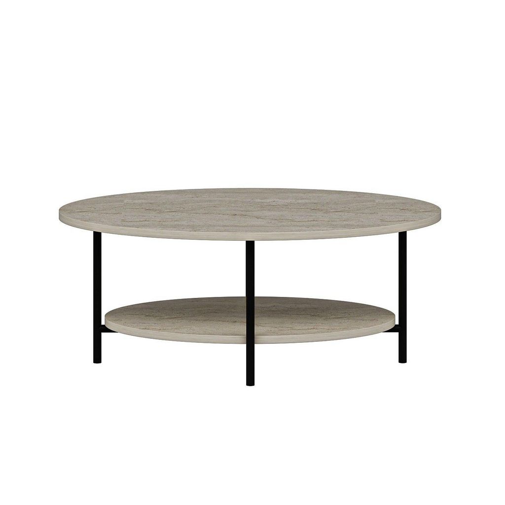 Table basse 1 étagère effet travertin - Beige et noir